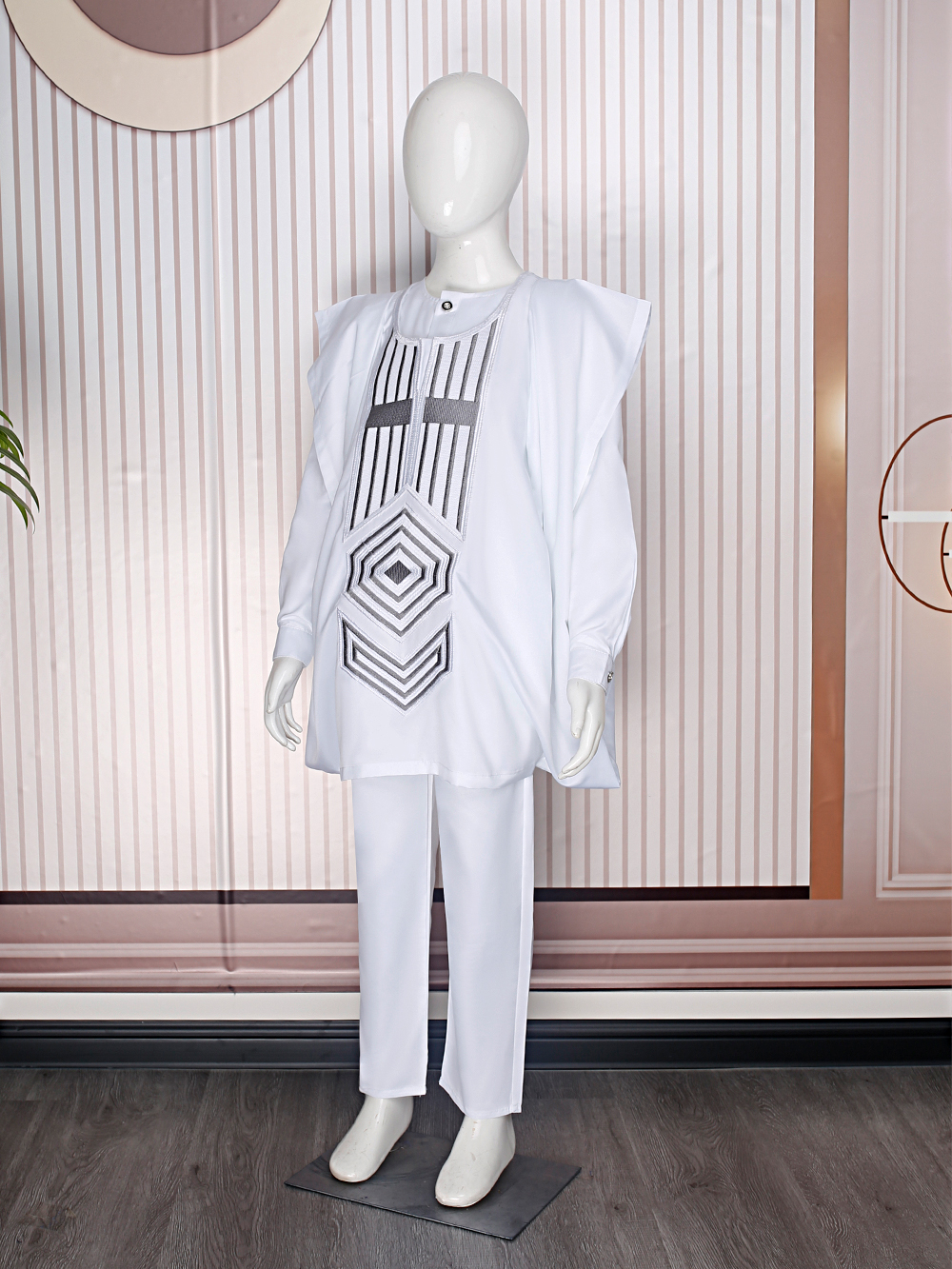 - Includes agbada (robe), sokoto (pants), and Kaftan (Top). The best part is the sokoto and kaftan can be worn as a complete attire without the agbada for a less formal look. So your Prince gets two looks from this three piece set!